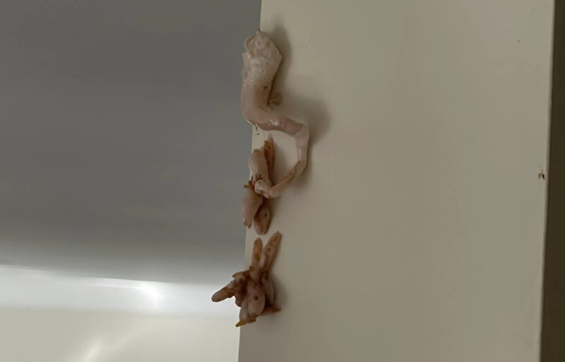 Il a dit que cela ressemblait à une colonie de champignons, avec un mycélium visible qui se propageait à travers le mur. Rien d’extraordinaire, surtout dans les climats tropicaux ou dans des espaces mal ventilés où l’humidité et la chaleur favorisent la prolifération des moisissures et des champignons. Mais il a ajouté quelque chose qui m’a glacé le sang : il a dit que cela pouvait aussi être des insectes parasites, vivant peut-être même dans le joint de silicone et utilisant la chaleur du mur comme habitat. Il a expliqué que de telles colonies se développent souvent lentement pendant des années, se nourrissant des matériaux de construction et créant un environnement dangereux pour les personnes aux alentours.